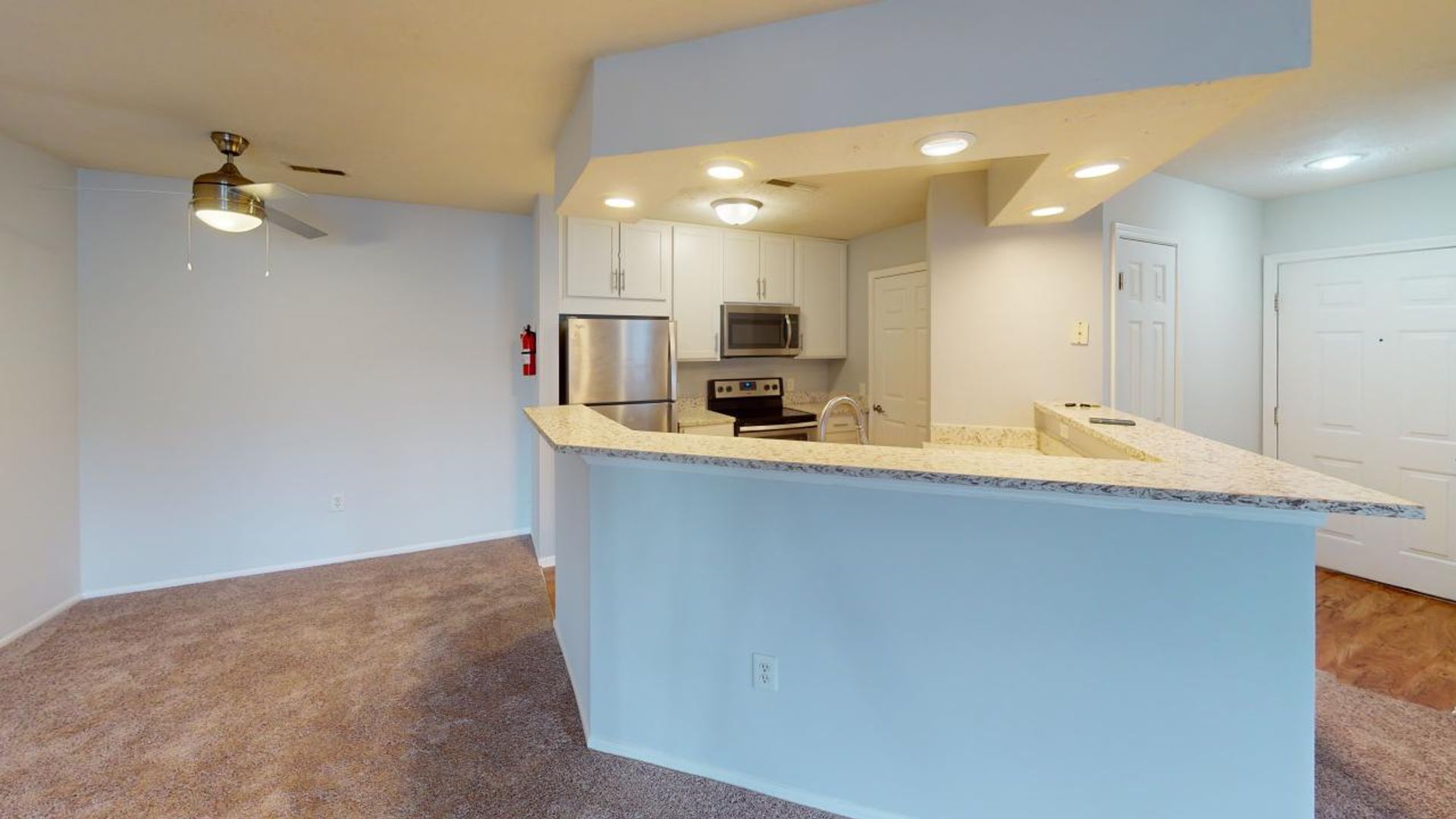 The Brighton, a charming split-bedroom floor plan with a den. The bedrooms are close to equal in size, including the den space. This apartment measures 1,167 square feet and contains two full bathrooms, plus a washer and dryer.