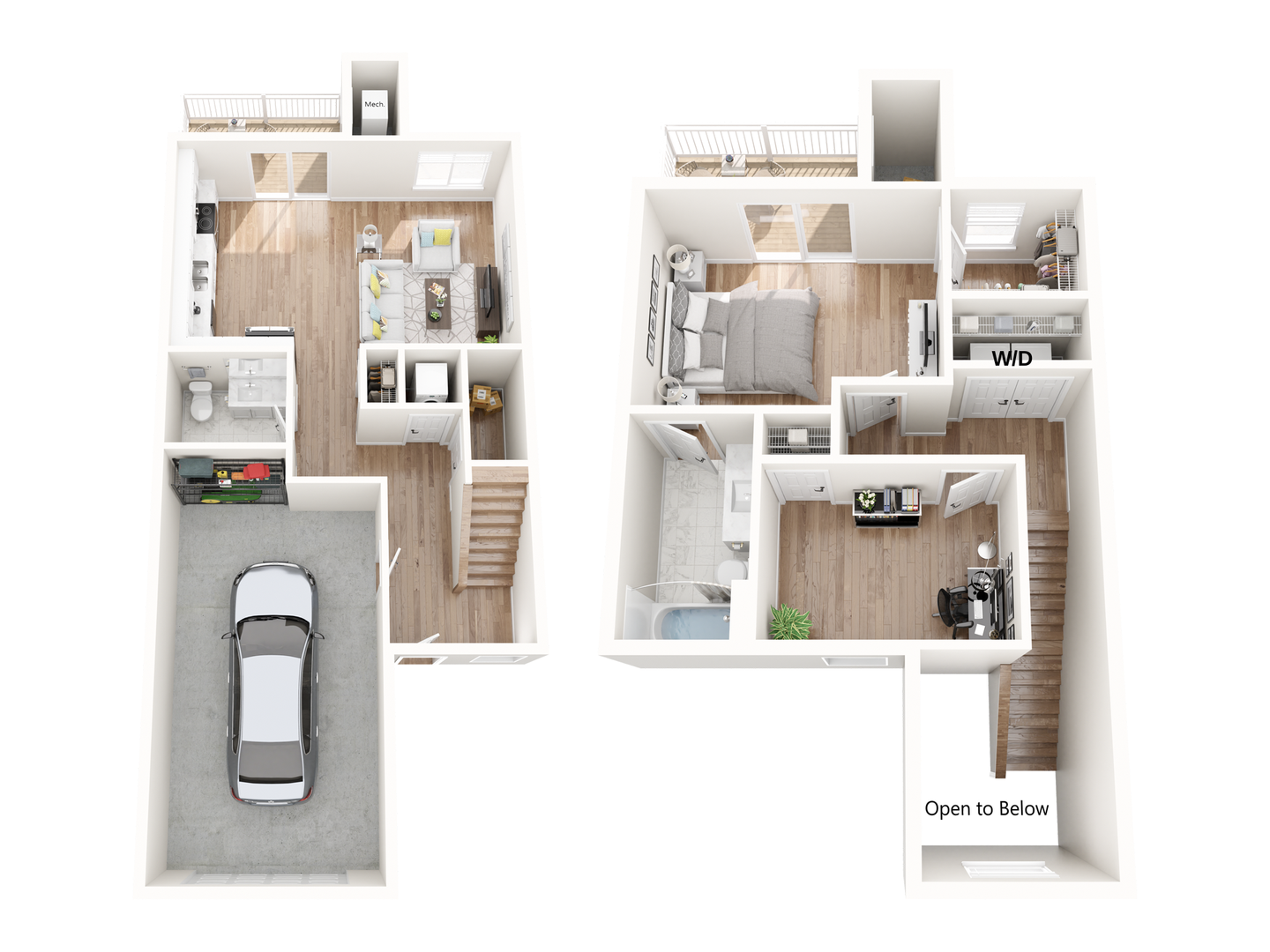 Welcome to The Sage Townhome, a beautifully designed two-story home offering 1,178 square feet with 1 bedroom and 1.5 bathrooms, thoughtfully crafted to blend comfort, style, and convenience. This spacious layout features elegant wood-style flooring, sleek quartz countertops, and a modern fireplace, creating a warm, inviting living space. Large windows and an open layout enhance the bright, airy feel throughout. Designed for effortless living, The Sage includes an attached private garage, in-home washer and dryer, generous closet space, exterior storage, and a fully equipped kitchen with modern appliances including a dishwasher, microwave, ice maker, garbage disposal, and full stove and oven. Enjoy private outdoor living with both a patio and balcony, perfect for relaxing or entertaining, along with everyday comforts such as air conditioning, ceiling fans, and access to a steam room. With Wi-Fi, high-speed internet, and an attached two-car garage, The Sage Townhome delivers a refined luxury living experience, featuring the space, amenities, and conveniences designed for modern living.